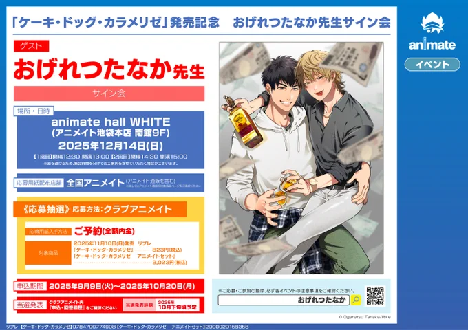 【書籍イベント情報】 『「ケーキ・ドッグ・カラメリゼ」発売記念 おげれつたなか先生サイン会』 開催決定コォ✨ 期間中、対象書籍をご予約(全額内金)いただいた方に 【応募シリアルレシート】をお渡し🎶 #おげれつたなか 先生 #ケーキ・ドッグ・カラメリゼ 🔽詳しくは下記POPをチェック🔽