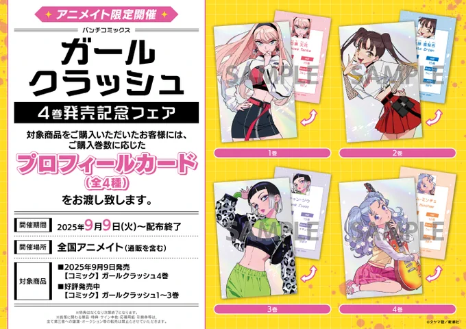 【書籍フェア情報】 『ガールクラッシュ4巻発売記念フェア』 本日より開催コォ🌟 期間中、対象書籍を1冊ご購入ごとに、巻数に応じた【プロフィールカード(全4種)】を1枚プレゼント🎁 #ガールクラッシュ 🔽詳しくは下記POPをチェック🔽
