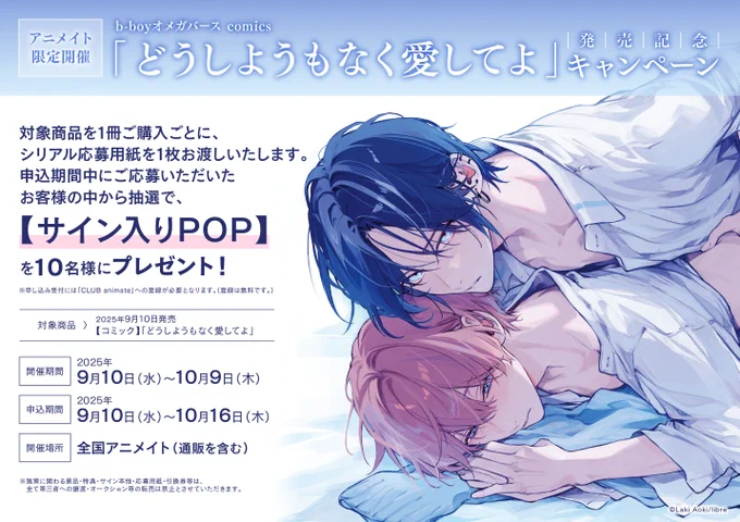 【書籍フェア情報】 9月10日より 『b-boyオメガバース comics「どうしようもなく愛してよ」発売記念キャンペーン』 が開催ですコォ💕 #どうしようもなく愛してよ #青木らき 先生 🔽詳細は下記の画像をチェック🔽