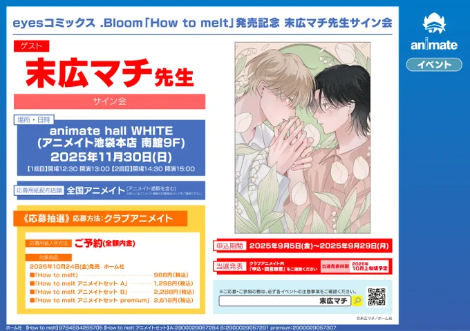 【書籍イベント情報】 『eyesコミックス .Bloom「How to melt」発売記念 末広マチ先生サイン会』 の開催が決定ですコォ✨ #Howtomelt #末広マチ 先生 🔽詳細は下記の画像をチェック🔽