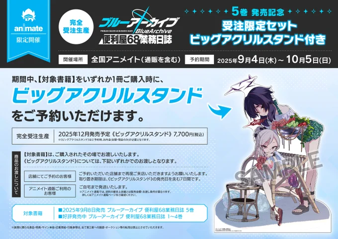 【予約情報】 【完全受注生産】 『ブルーアーカイブ 便利屋68業務日誌 5巻 発売記念 受注限定セット ビッグアクリルスタンド付き』 対象書籍をご購入で《ビッグアクリルスタンド》をご予約いただけますコォ💖 ※ご予約は全額内金必須です。 🔽詳細は下記の画像をチェック🔽