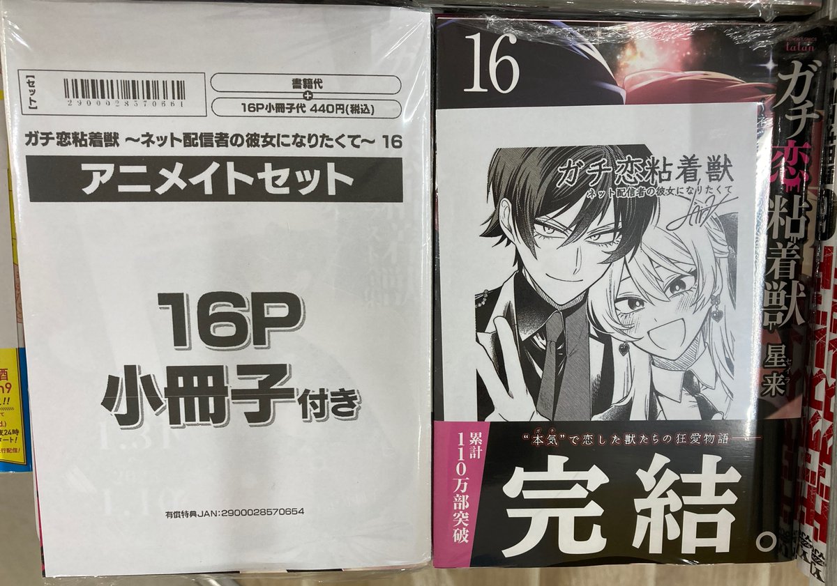 【書籍新刊情報】 「ガチ恋粘着獣 16」が入荷しましたコォ✨ アニメイト限定セットがございます 購入特典【MP・リーフレット】がございます #ガチ恋粘着獣 #星来 先生 新刊コーナーにて発売中‼️