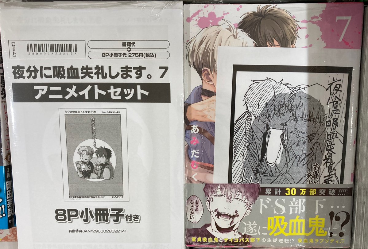 【書籍新刊情報】 「夜分に吸血失礼します。 7」が入荷しましたコォ💕 アニメイト限定セットがございます 購入特典【MP】がございます #夜分に吸血失礼します #あみだむく 先生 新刊コーナーにて発売中‼️