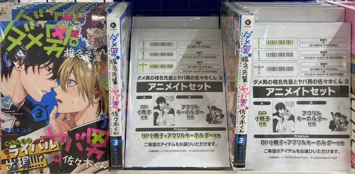 【書籍新刊情報】 「ダメ男の椎名先輩とヤバ男の佐々木くん 3」が入荷しましたコォ✨ アニメイト限定セットがございます #ダメ男の椎名先輩とヤバ男の佐々木くん #伊咲ネコオ 先生 新刊コーナーにて発売中‼️