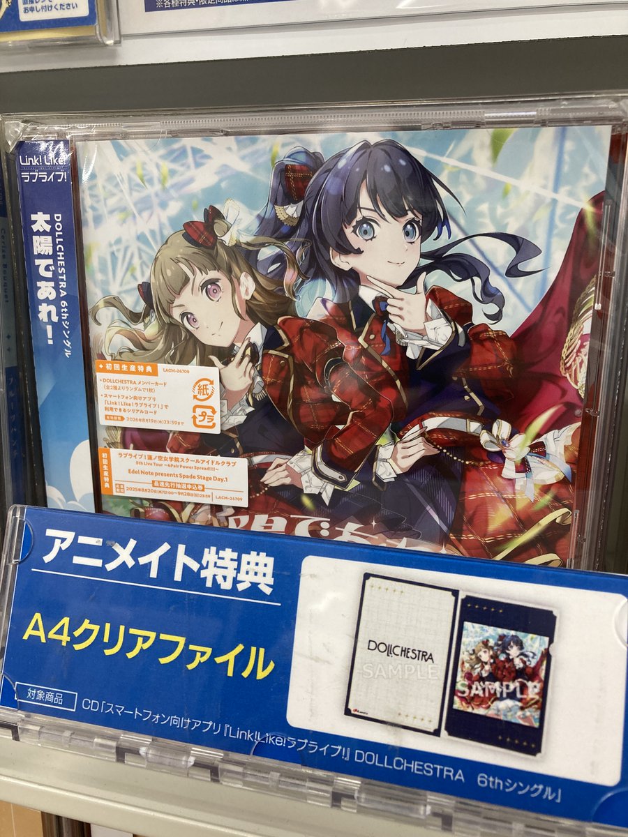 【CD入荷情報】 ラブライブ! 蓮ノ空女学院スクールアイドルクラブ DOLLCHESTRA 6thシングル「太陽であれ!」 入荷しましたコォ☀️✨ 🎁アニメイト特典:A4クリアファイル 🎁封入特典:Edel Note presents Spade Stage Day.1 最速先行抽選申込券 #lovelive #蓮ノ空