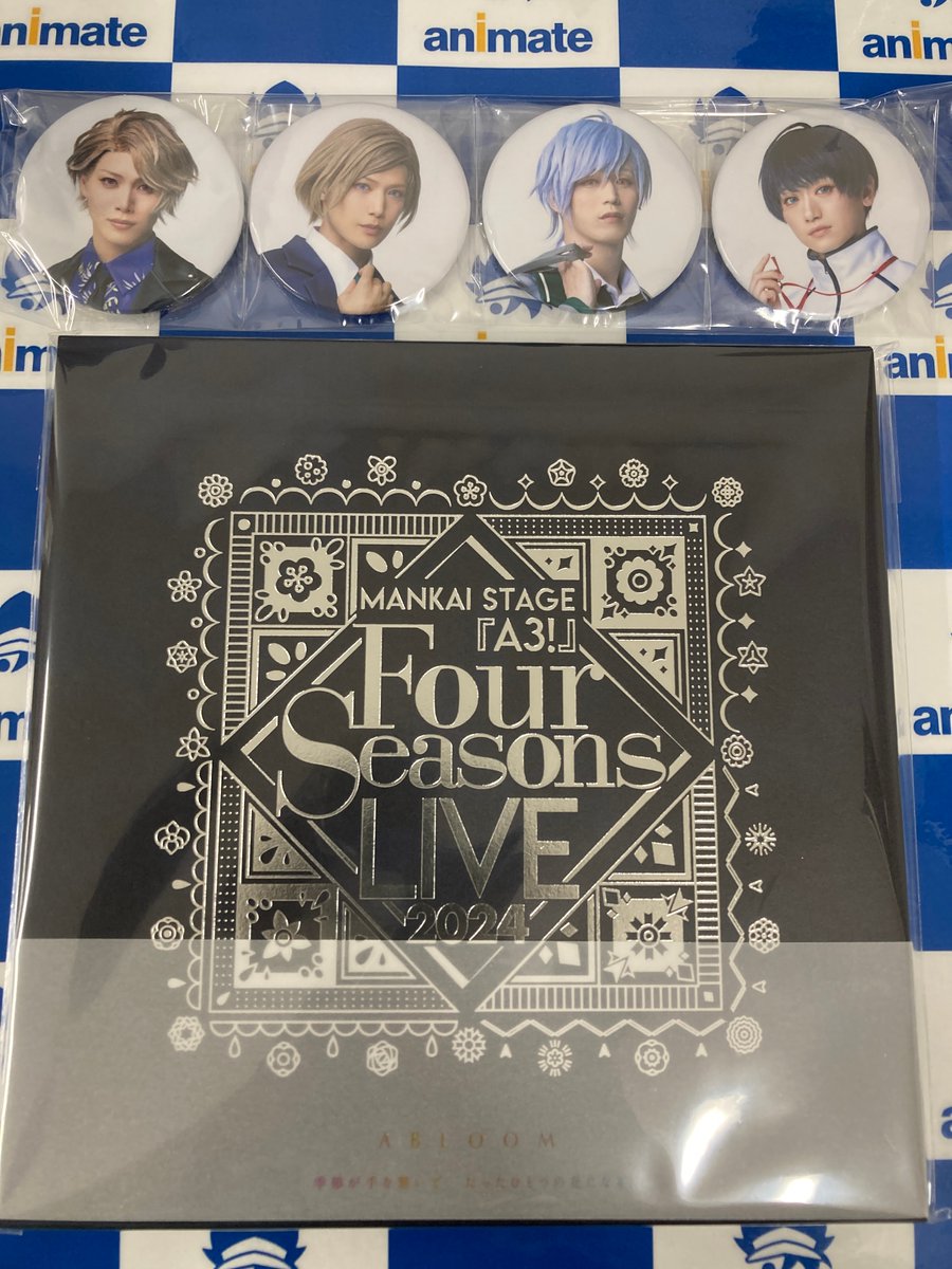 【BD入荷情報】 舞台 MANKAI STAGE『A3!』~Four Seasons LIVE 2024~ 入荷しましたコォ✨✨ 🎁アニメイト特典:56mm缶バッジ4個セット(絵柄:ミックス公演絵柄(『ウラオモテTEACHER』 ) #エーステ