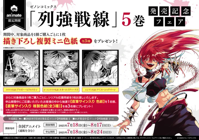 【書籍フェア情報】 現在開催中の 『ゼノンコミックス「列強戦線」5巻 発売記念フェア』 は8月17日まで‼️ 間もなく終了ですコォ‼️#列強戦線 🔽詳細は下記の画像をチェック🔽