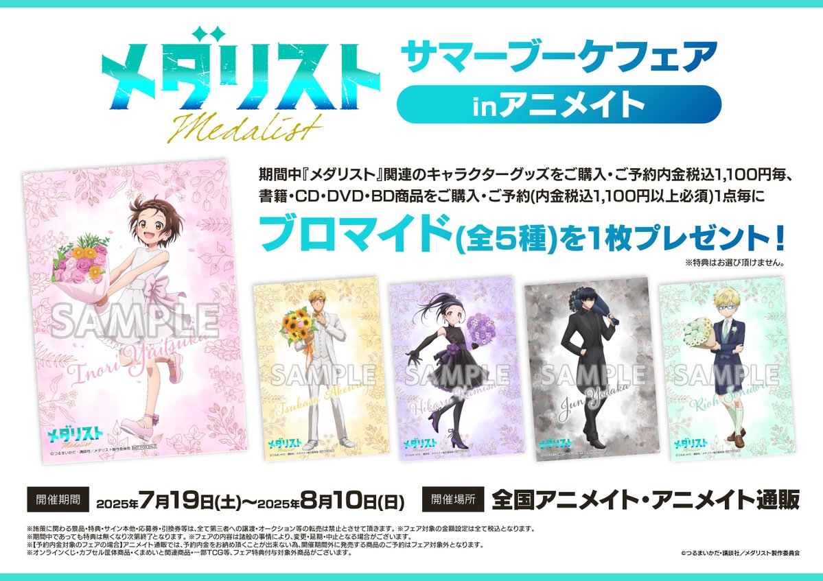 【フェア情報】 『TVアニメ「メダリスト」サマーブーケフェア inアニメイト』 が間もなく終了ですコォ!! 期間中、関連商品をご購入・ご予約で【ブロマイド(全5種)】を1枚プレゼント #メダリスト #medalist 🔽詳細はこちら🔽