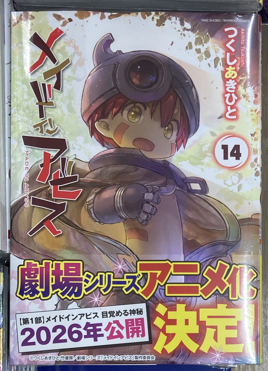 【書籍新刊情報】 「メイドインアビス」14巻 が入荷しましたコォ✨ 購入特典【ビジュアルボード】がございます。 新刊コーナーにて発売中🎶 #メイドインアビス #つくしあきひと 先生