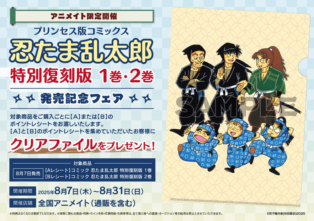 【書籍新刊情報】 「#忍たま乱太郎 特別復刻版 1巻・2巻」が入荷しましたコォ⭐️ 購入特典【イラストカード】 さらに‼️ 「忍たま乱太郎 特別復刻版 1巻・2巻」発売記念フェアが開催コォ🎉 🔽詳しくはコチラ🔽