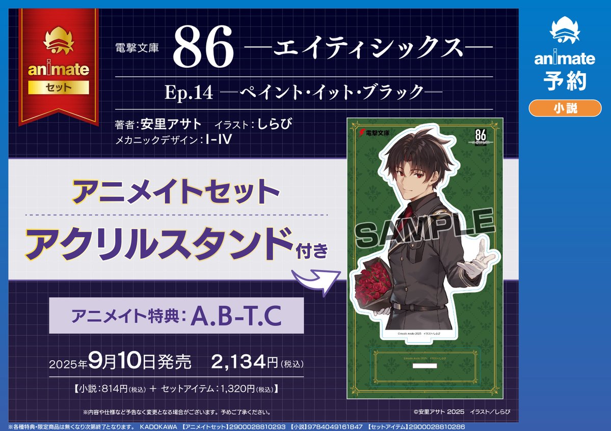 【予約情報】 #安里アサト 先生 『86―エイティシックス―Ep.14 ─ペイント・イット・ブラック─ アニメイトセット』 の予約が受付中ですコォ✨ #エイティシックス バーコード簡単予約がオススメ‼️ 🔽をタップ→レジでバーコード表示を見せてね📱 animate-onlineshop.jp/pd/3181334/?ut…