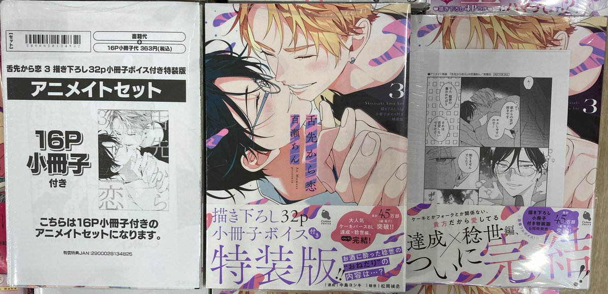 【書籍新刊情報】 「舌先から恋 3」が入荷しましたコォ❤️ 通常版と小冊子ボイス付き特装版がございます アニメイト限定セットがございます 購入特典【MP2種】がございます #舌先から恋 #百瀬あん 先生 新刊コーナーにて発売中‼️