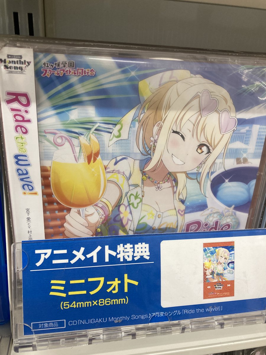 【CD入荷情報】 ラブライブ!虹ヶ咲学園スクールアイドル同好会 NIJIGAKU Monthly Songs♪7月度シングル「Ride the wave!」/宮下 愛(CV.村上奈津実) 入荷しましたコォ🎵🎵 🎁アニメイト特典:ミニフォト(54mm×86mm) 🎁メーカー連動特典:12枚収納CDボックス #lovelive #虹ヶ咲