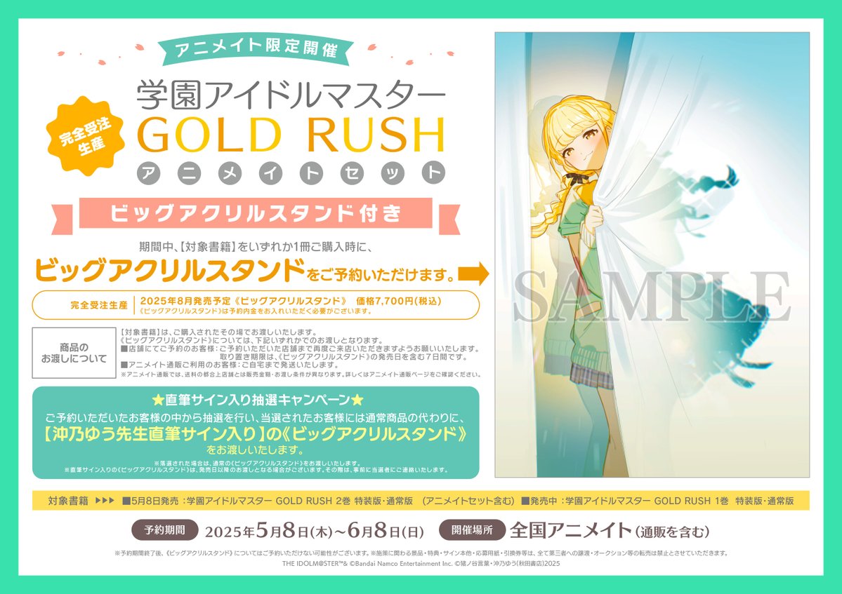【書籍予約情報】 本日より‼️ 「【完全受注生産】学園アイドルマスター GOLD RUSH(2) ビッグアクリルスタンド」発売決定コォ🎉 期間中、【対象書籍】をご購入時にご予約いただけます ※全額内金必須になります。 #学マス 🔽詳しくはコチラ🔽