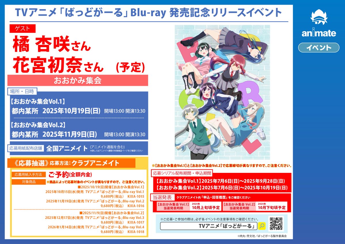 【イベント情報】 TVアニメ「ばっどがーる」Blu-ray 発売記念リリースイベント 開催決定コォ‼️‼️ 対象商品いずれかに全額内金ご予約いただいたお客様にシリアル応募用紙をお渡しコォ✨✨ ※巻数で応募対象のイベント、応募期間が異なります。 #ばっどがーる 詳細は🔽POPをチェック