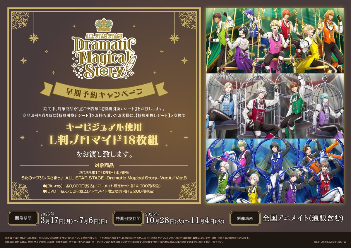 【フェア情報】 📢7/6(日)まで‼️ 「うたの☆プリンスさまっ♪ ALL STAR STAGE -Dramatic Magical Story-」早期予約キャンペーン 開催中コォ✨✨ 期間中、対象商品をご予約いただいたお客様に商品お引き取り時【キービジュアル使用L判ブロマイド18枚組】をプレゼントコォ‼️‼️ 詳細は🔽POPをチェック