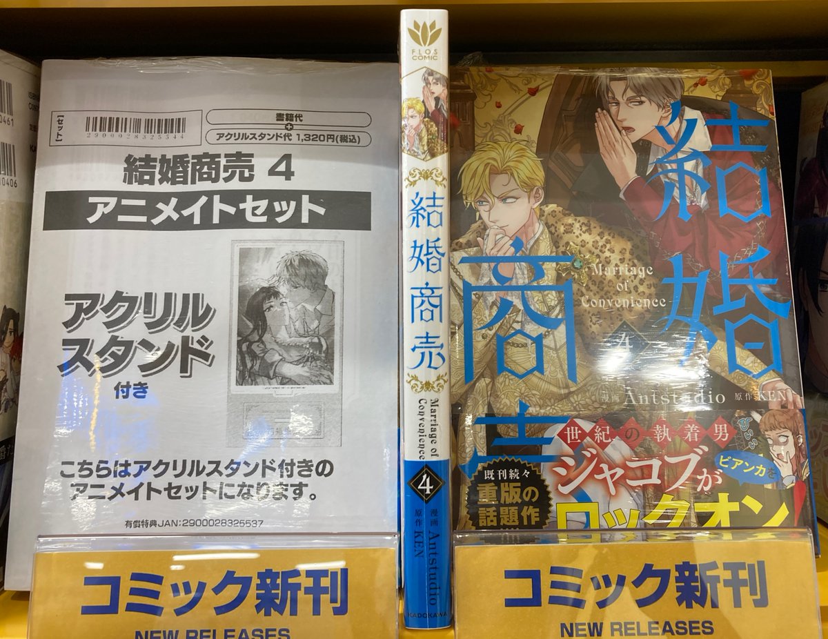 【書籍新刊情報】 「結婚商売 4」が入荷しましたコォ❤️ アニメイト限定セットがございます 購入特典【ビジュアルボード】がございます #結婚商売 #Antstudio 先生 #KEN 先生 新刊コーナーにて発売中‼️