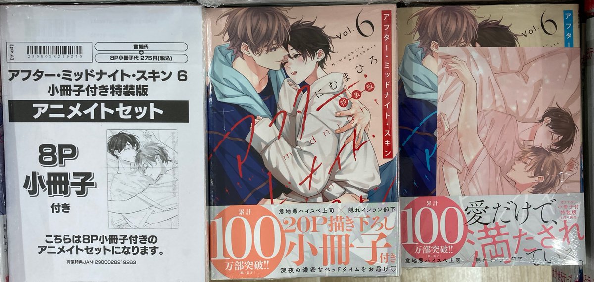 【書籍新刊情報】 「アフター・ミッドナイト・スキン 6」が入荷しましたコォ💞 通常版と小冊子付き特装版がございます アニメイト限定セットがございます 購入特典【イラストカード】がございます #アフター・ミッドナイト・スキン #にむまひろ 先生 新刊コーナーにて発売中‼️