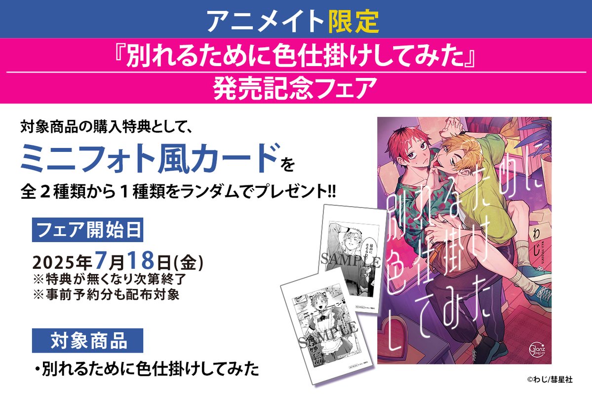 【書籍フェア情報】 「『別れるために色仕掛けしてみた』発売記念フェア」 開催決定コォ✨ 期間中、対象商品を1冊ご購入ごとに【ミニフォト風カード(全2種)】を1枚プレゼント🎁 🔽詳しくはPOPをご確認ください🔽