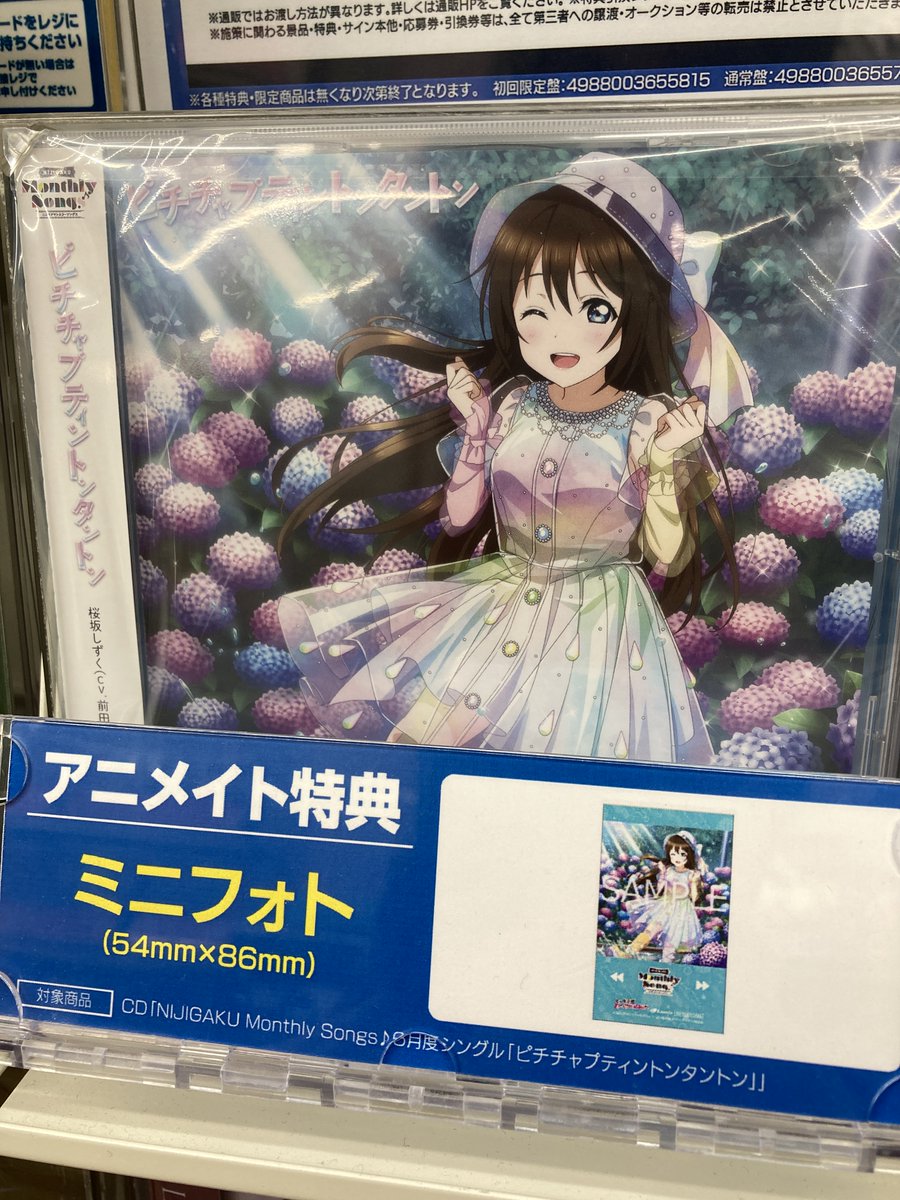 【CD入荷情報】 ラブライブ!虹ヶ咲学園スクールアイドル同好会 NIJIGAKU Monthly Songs♪6月度シングル「ピチチャプティントンタントン」 入荷しましたコォ✨✨ 🎁アニメイト特典:ミニフォト(54mm×86mm) 🎁メーカー連動特典:12枚収納CDボックス #lovelive #虹ヶ咲
