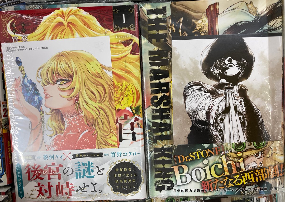 【書籍新刊情報】 「滅国の宦官 1」 「THE MARSHAL KING」 が入荷しましたコォ🎵 購入特典【イラストカード】がございます #宵野コタロー 先生 #蔡河ケイ 先生 #Boichi 先生 新刊コーナーにて発売中‼️