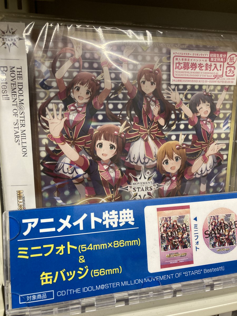 【CD入荷情報】 THE IDOLM@STER MILLION MOVEMENT OF “STARS” Bestest!! 入荷しましたコォ✨✨ 🎁アニメイト特典:ミニフォト(54mm×86mm)+缶バッジ(56mm) #ミリマス