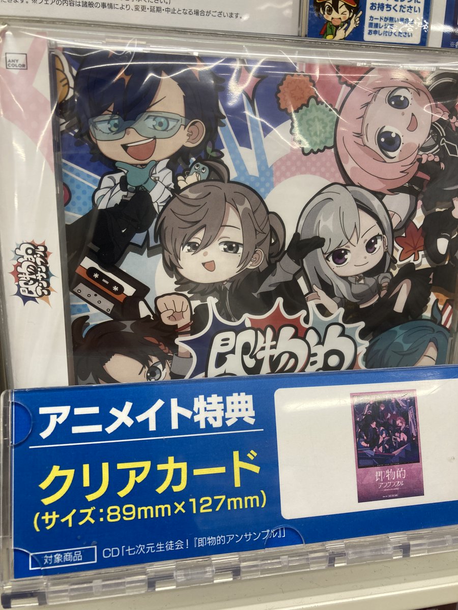 【CD入荷情報】 #七次元生徒会!『即物的アンサンブル』 初回生産限定盤 入荷コォ🌈🎵🎵 🎁アニメイト特典:クリアカード 本日より発売記念キャンペーン開催‼️‼️ ②「スペシャルメッセージレシート」キャンペーン 郡山店は1年生メンバーの2人のレシートが発行されますコォ✨✨ #にじさんじ
