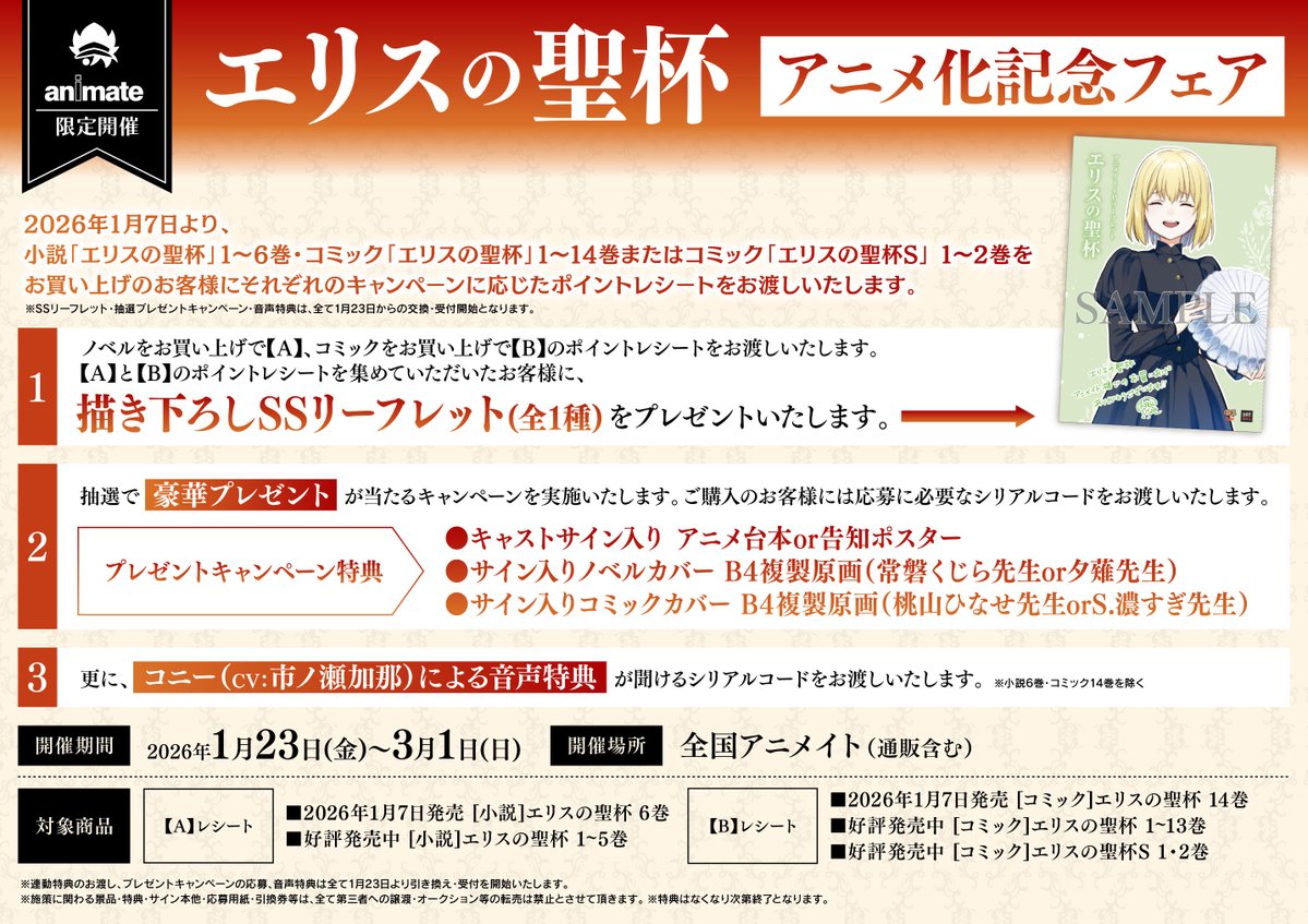 【書籍フェア情報】 1月23日より 『『エリスの聖杯』アニメ化記念フェア』 の開催が決定ですコォ❣️ #エリスの聖杯 🔽詳細は下記の画像をチェック🔽