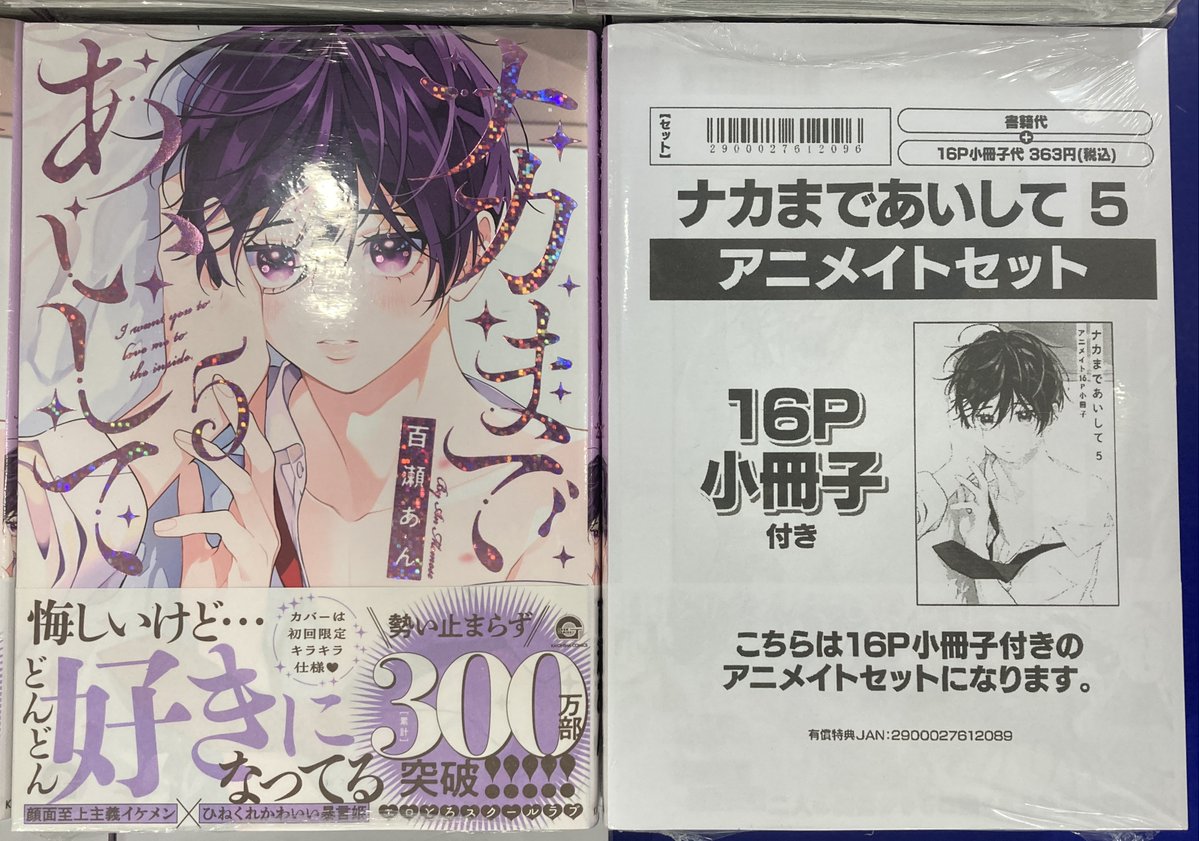 【書籍新刊情報】 「ナカまであいして」5巻 が入荷しましたコォ❣️ 購入特典【MP】がございます。 アニメイトセットがございます。 新刊コーナーにて発売中✨ #ナカまであいして #百瀬あん 先生
