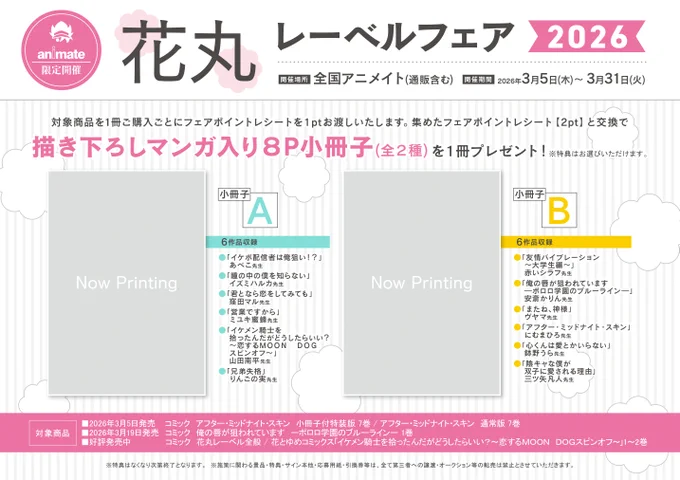 【書籍フェア情報】 2026年3月3日より 『花丸レーベルフェア2026』 の開催が決定ですコォ🎶 期間中、対象商品2冊ご購入毎に【描き下ろしマンガ入り8P小冊子(全2種)】を1点プレゼント🎁 🔽詳細は下記の画像をチェック🔽