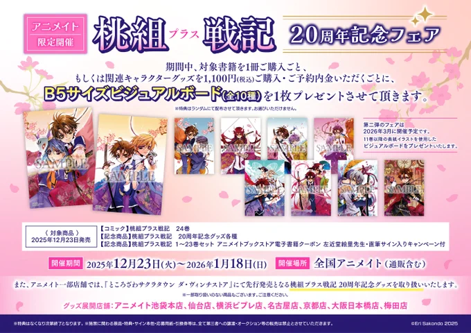 【書籍フェア情報】 『桃組プラス戦記 20周年記念フェア』 本日より開催コォ🌟 期間中、対象商品のご購入・ご予約で、 特典《B5サイズビジュアルボード(全10種)》を1枚プレゼント🎁✨ 🔽詳細こちら🔽