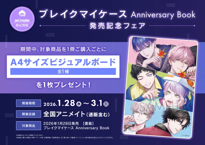【書籍フェア情報】 1/28(水)より‼️ 『「ブレイクマイケース Anniversary Book」発売記念フェア』開催決定コォ🎉 期間中、対象商品を1冊ご購入ごとに 《A4サイズビジュアルボード(全1種)》を1枚プレゼント🎁 🔽詳しくはコチラ🔽