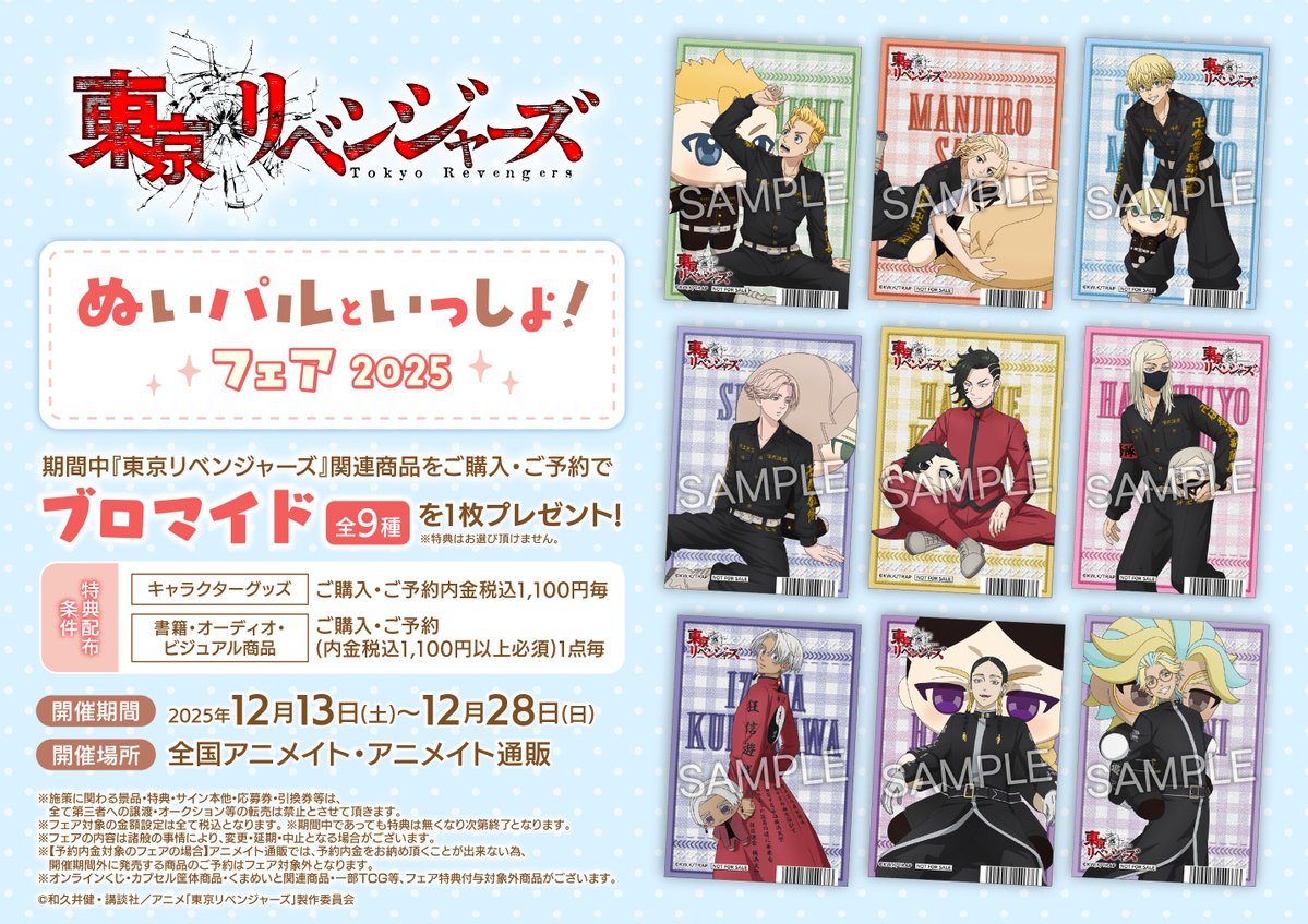 【フェア情報】 TVアニメ『東京リベンジャーズ』ぬいパルといっしょ!フェア 2025 本日≪13日~≫開催ですコォ🎉 期間中、フェア条件を満たしたお客様に、≪ブロマイド(全9種)≫を1枚プレゼント🎁✨ #東リベ 🔻詳細はこちら🔻
