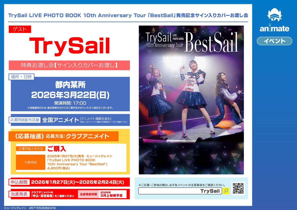 【書籍新刊情報】 「TrySail LIVE PHOTO BOOK 10th Anniversary Tour “BestSail”」 が入荷しましたコォ🎶 購入特典【ブロマイド 3枚セット】がございます さらに‼️ 発売記念サイン入りカバーお渡し会開催コォ🎉 #TrySail #BestSail 🔽詳しくはコチラ🔽