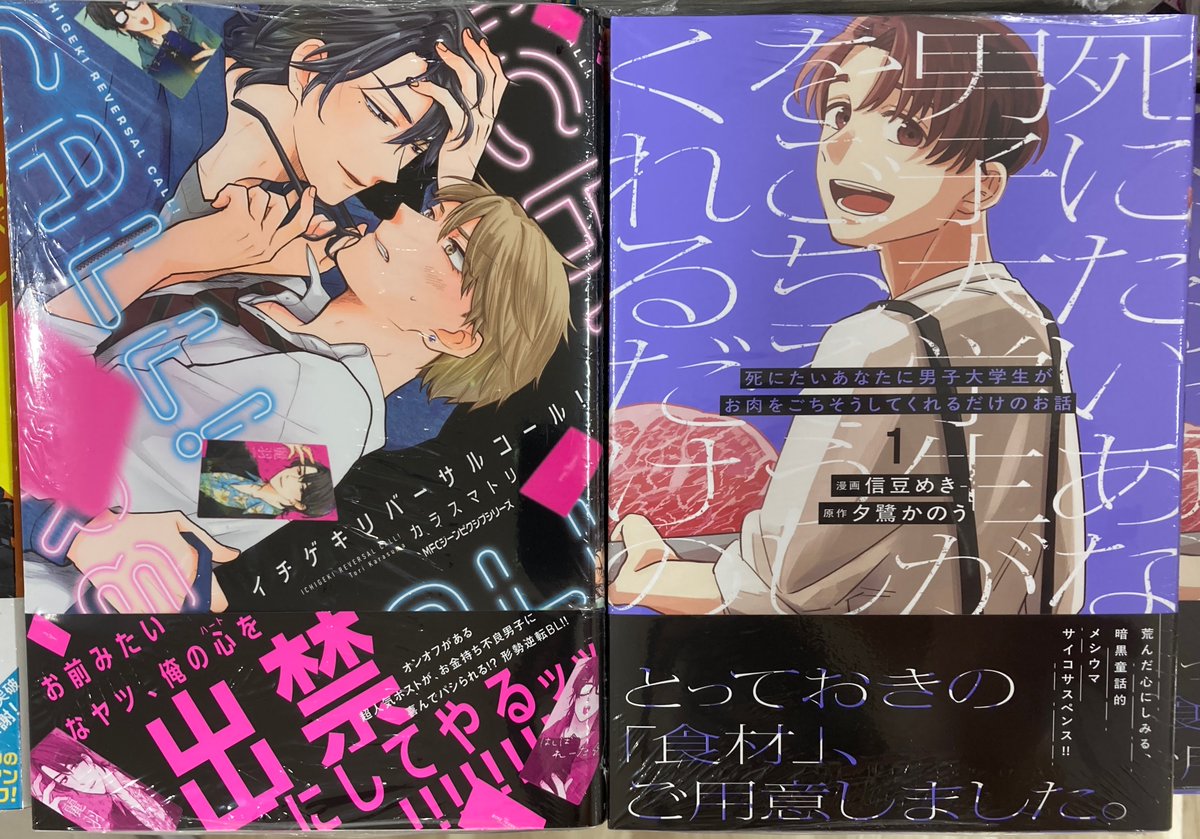 【書籍新刊情報】 「#イチゲキリバーサルコール!」 「#死にたいあなたに男子大学生がお肉をごちそうしてくれるだけのお話 1」 が入荷しましたコォ✨ #カラスマトリ 先生 #信豆めき 先生 #夕鷺かのう 先生 新刊コーナーにて発売中‼️