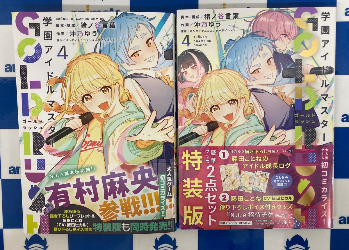 【書籍新刊情報】 「学園アイドルマスター GOLD RUSH 4」が入荷しましたコォ🎶 通常版と豪華グッズ2点セット付き特装版がございます 購入特典【ブロマイド】がございます #学園アイドルマスター #猪ノ谷言葉 先生 #沖乃ゆう 先生 新刊コーナーにて発売中‼️