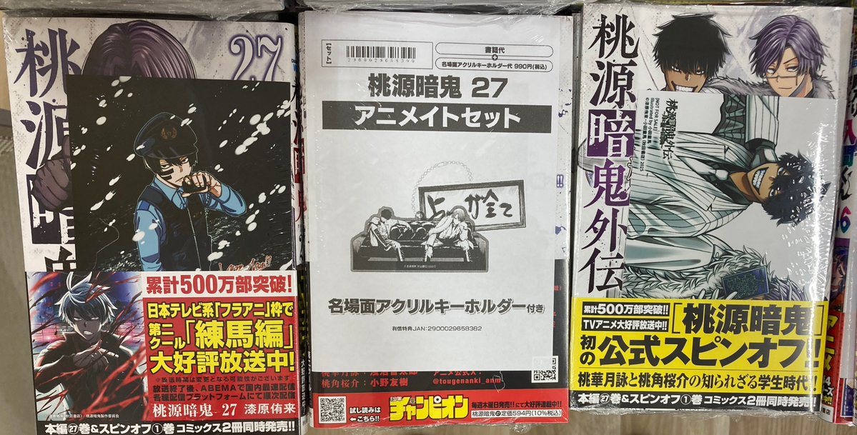 【書籍新刊情報】 「桃源暗鬼 27」 「桃源暗鬼外伝~月と桜の狂争曲~ 1」 が入荷しましたコォ✨ アニメイトセットがございます 購入特典【ブロマイド】がございます #桃源暗鬼 #漆原侑来 先生 新刊コーナーにて発売中‼️