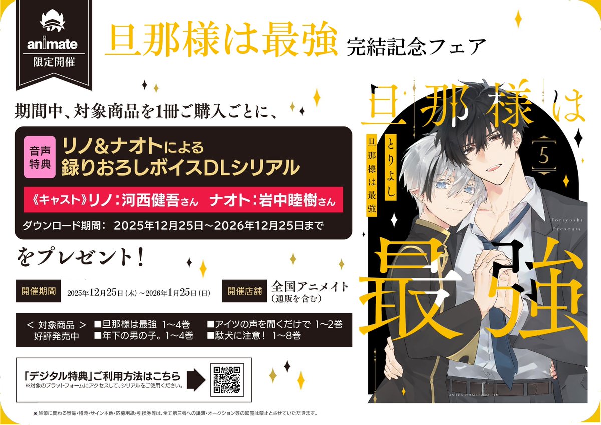 【書籍フェア情報】 現在開催中の 『「旦那様は最強」完結記念フェア』 は1月25日まで‼️ 間もなく終了ですコォ‼️ 🔽詳細は下記の画像をチェック🔽