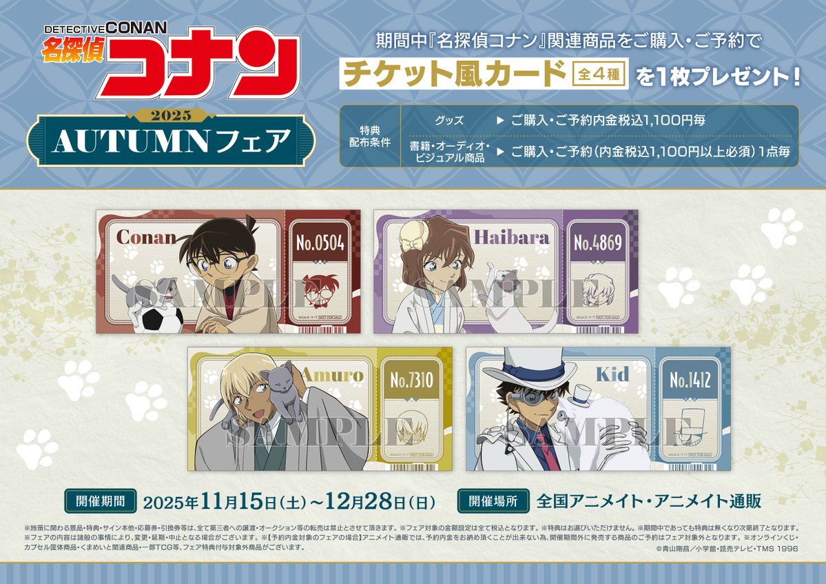 【フェア情報】 名探偵コナン 2025 AUTUMNフェア 明日≪15日~≫開催ですコォ🎉 期間中、フェア条件を満たしたお客様に、≪チケット風カード(全4種)≫を1枚プレゼント🎁✨ #名探偵コナン 🔻詳細はこちら🔻