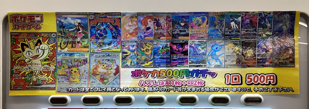【ポケモンカード販売情報】 ポケカ500円ガチャ展開しました⚡️ 今回の大当たりはニャースex🐾🐾 他にもピカチュウやイーブイなどが当たりとして入っております🙌 皆様のご来店お待ちしております🙇♂️