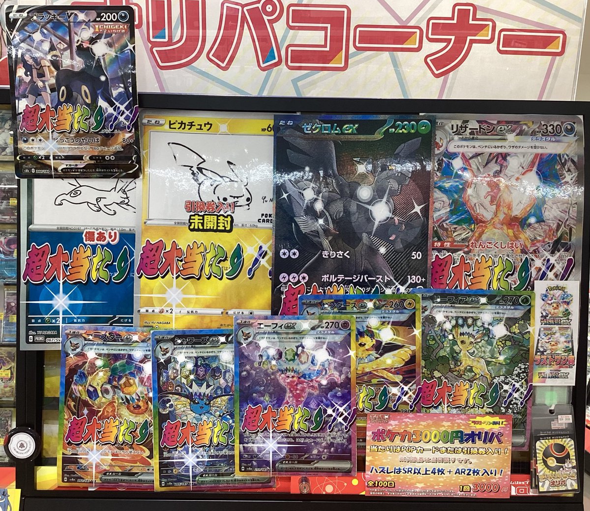 【ポケモンカード販売情報】 ポケカ3000円オリパ残り少なくなっております‼️ 残り物には福があるかも……❓ 皆様のご来店お待ちしております🤝