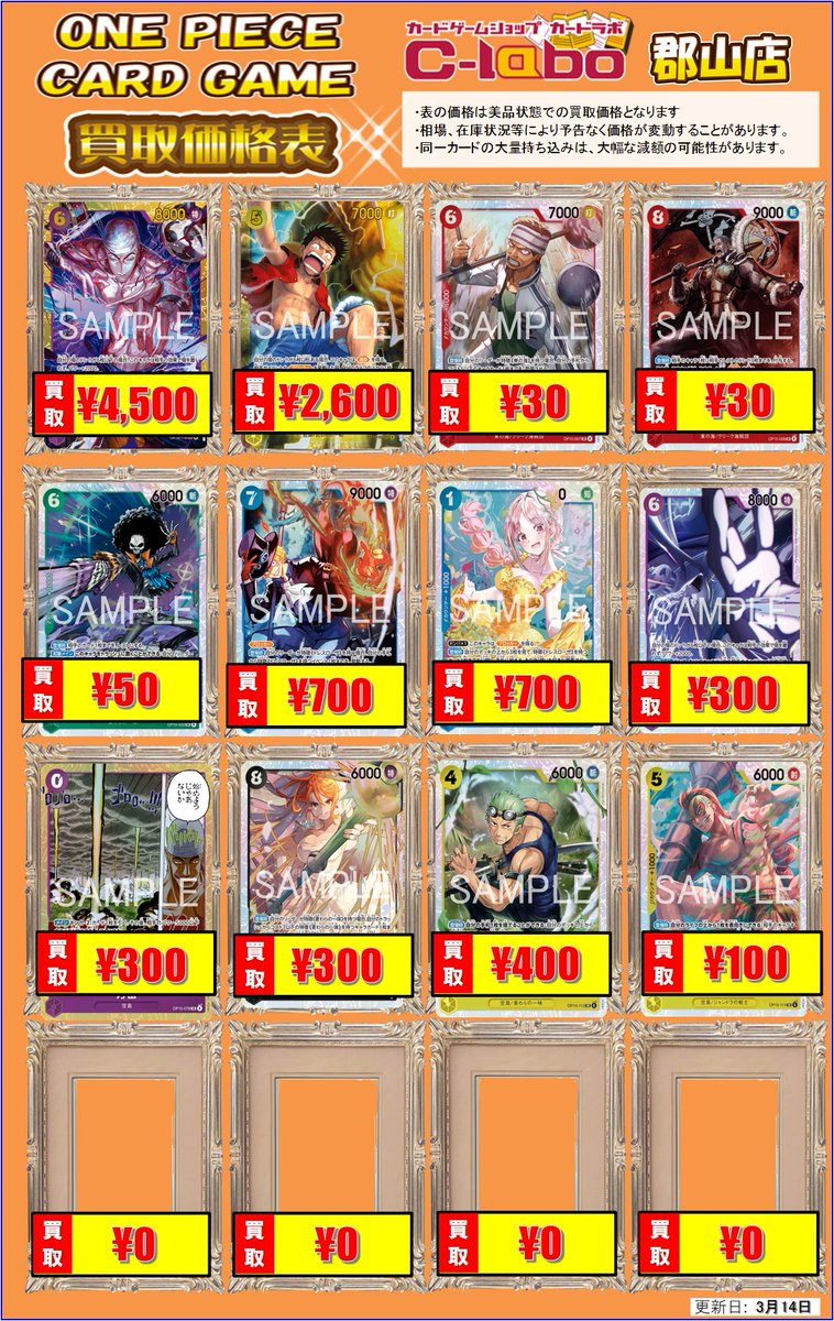 【ワンピースカード買取情報】 OP15買取表更新いたしました‼️ 不要なパーツございましたらぜひお持ち込みください☺ ご来店お待ちしております🙇♀️
