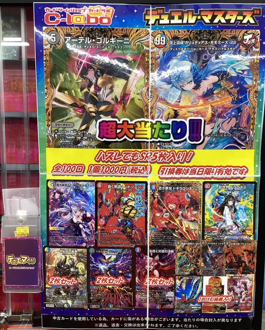 【デュエルマスターズ販売情報】 1000円オリパ 販売中!! アーテル・ゴルギーニ、 ガリュディアス・モモミーズ金トレなどご用意しております✨ 運試しにぜひおひとついかがでしょう😊