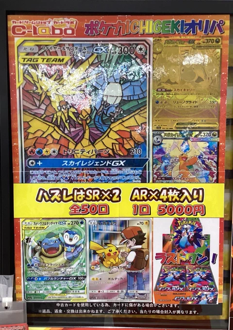 【ポケモンカード販売情報】 好評ポケカ5000円オリパ 残り12口とわずかとなっております‼️ ラストワン賞もございます✨️ 運試しにお1ついかがでしょうか❓ ご来店お待ちしております🙇♂️