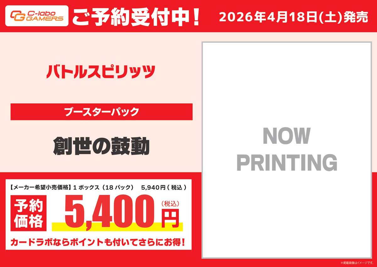【バトルスピリッツ 予約情報】 ✨4月18日(土)発売✨ ✨ブースターパック 創世の鼓動✨ 🔥🔥予約価格 5400円🔥🔥 ご予約受付開始致しました! ご予約にはポイントカードが必須となります。 カードラボ郡山店までお待ちしております❣❣