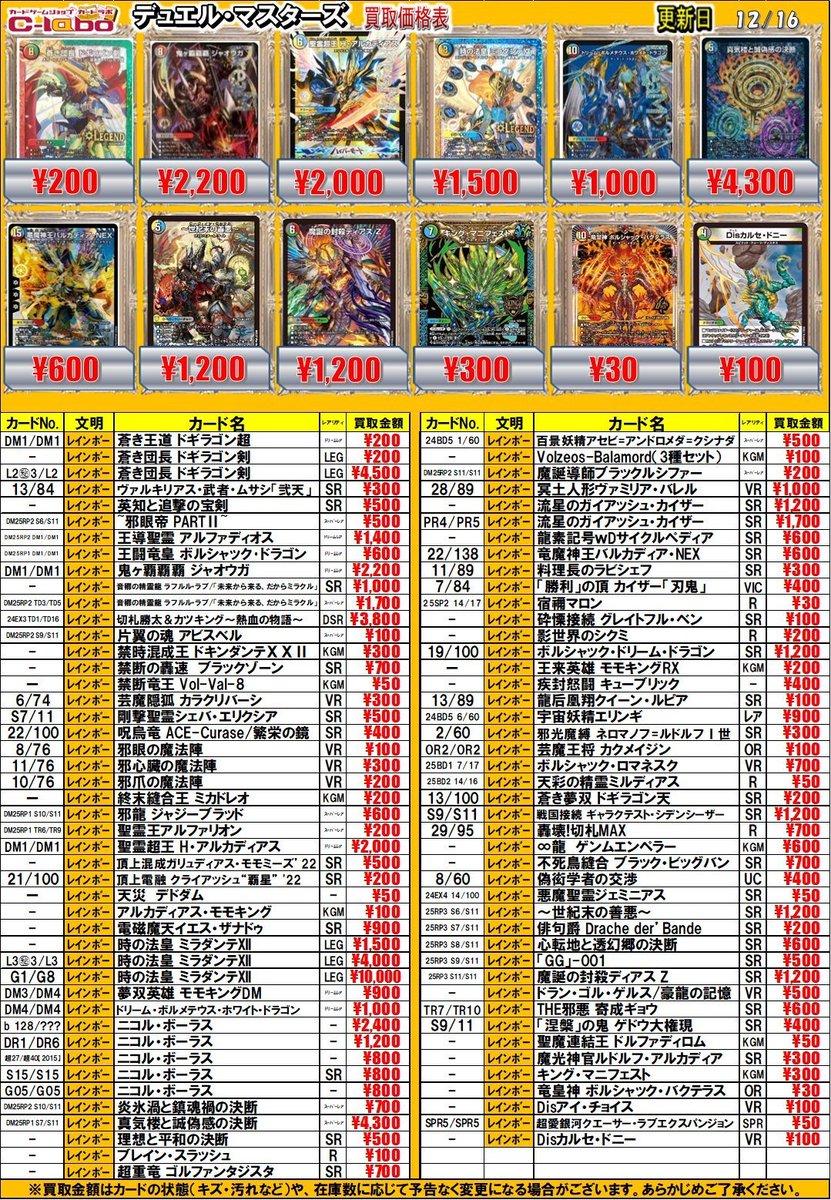 【デュエマ 買取情報】 汎用系や神アートなどの買取表になります 是非お持ち込みお待ちしております