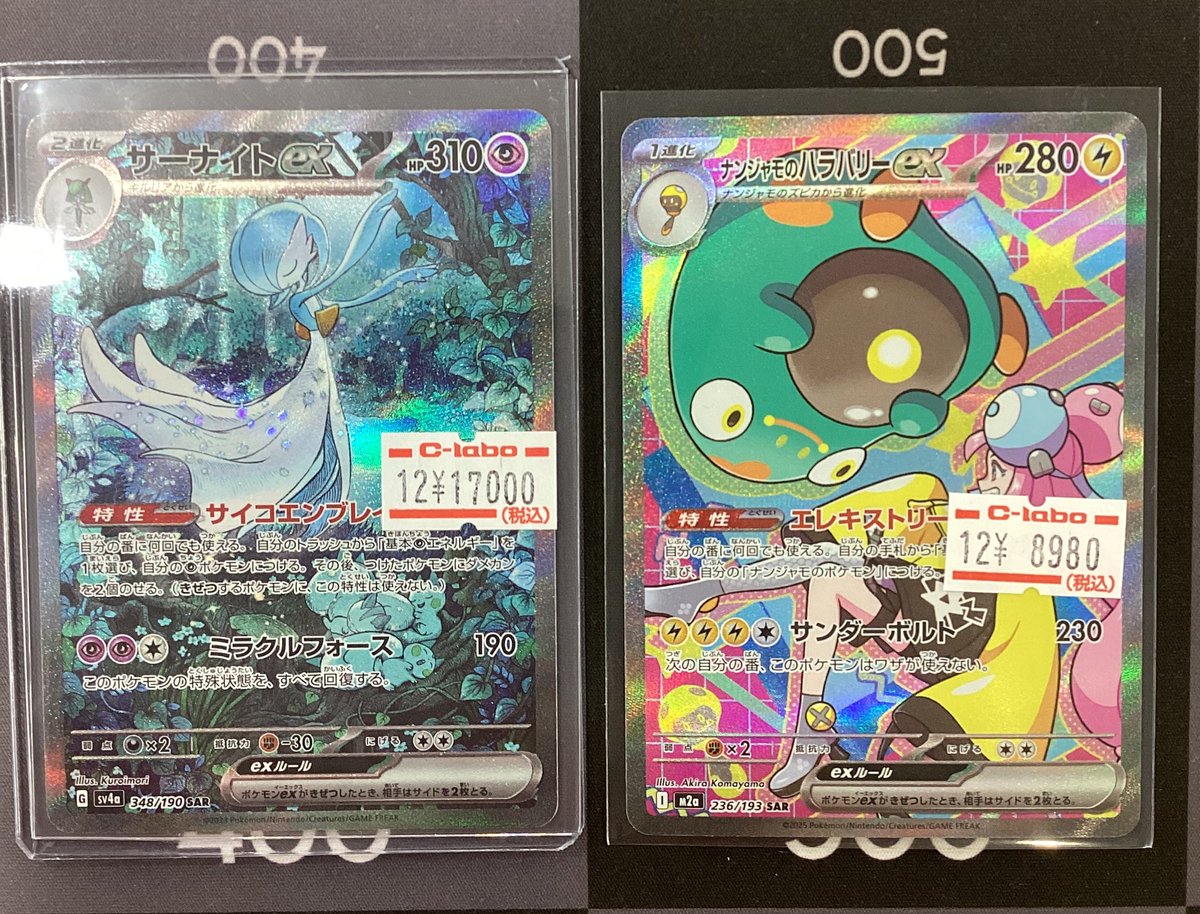【ポケモンカード販売情報】 こちらのカード入荷いたしました!! ☪️サーナイトex 色違い SAR ⚡️ナンジャモのハラバリーex SAR 状態確認お気軽にお声掛けくださいませ♪̊̈♪̆̈