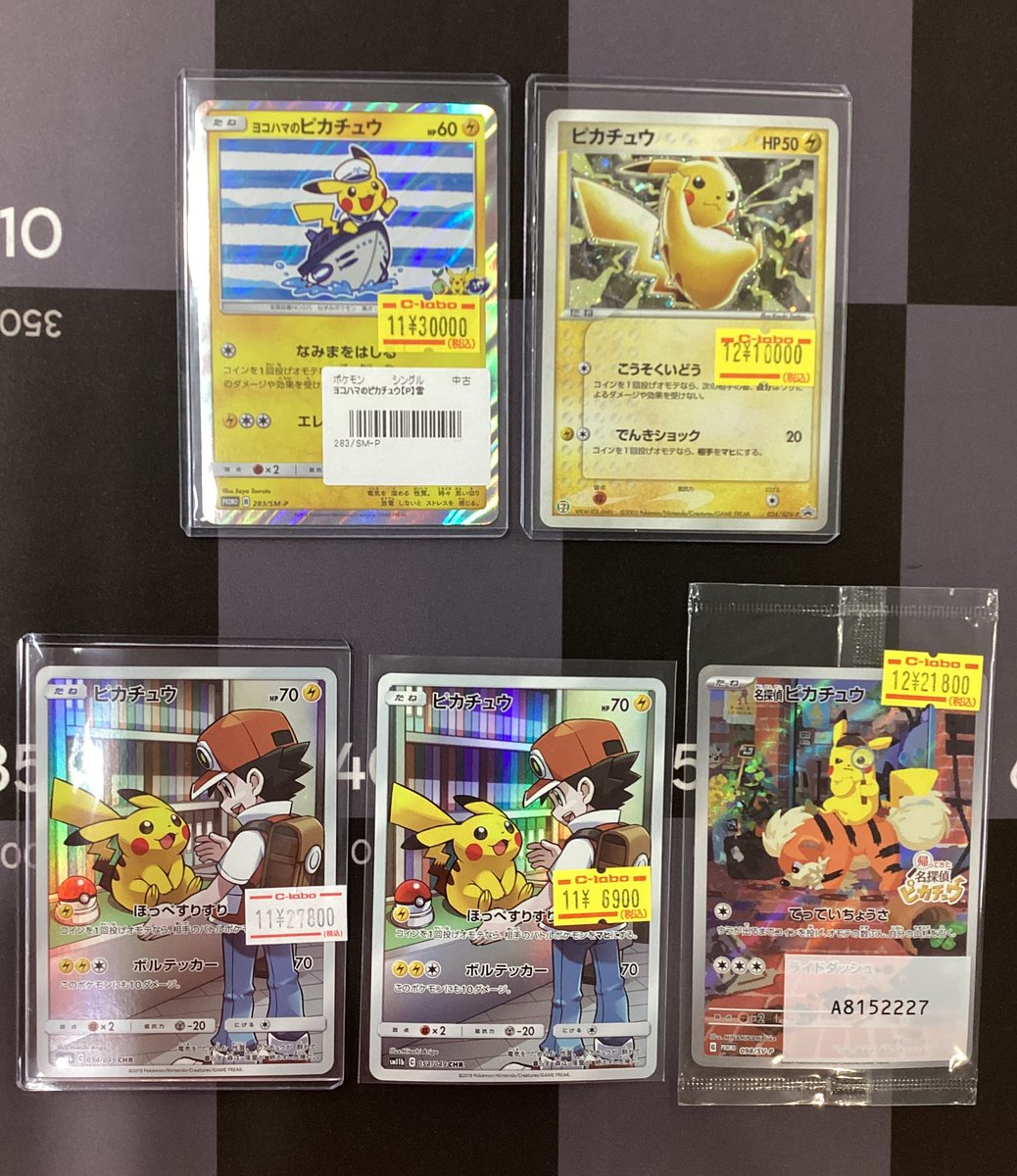 【ポケモンカード販売情報】 こちらの様々なピカチュウ、入荷チュウ⚡️⚡️ ぜひお迎えいかがでしょうか〜⸜(*˙꒳˙*)⸝💕 ピカチュウ好きの皆さまのご来店お待ちしております♪̊̈♪̆̈