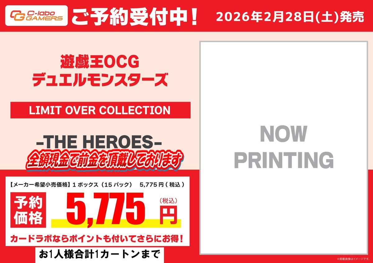 【遊戯王 予約情報】 遊戯王のLIMIT OVER COLLECTIONの予約二次受付を開始させていただきます。 こちらはご予約時に全額現金で前金を頂戴しております。 お一人様の予約上限は各種1カートンまでとなります。 以前にご予約された方も合計1カートンまでご予約可能です。