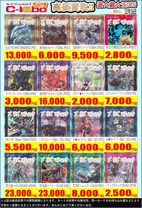 【遊戯王OCG 買取情報】 高レアの買取表になります 是非お持ち込みお待ちしております❣❣